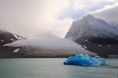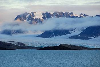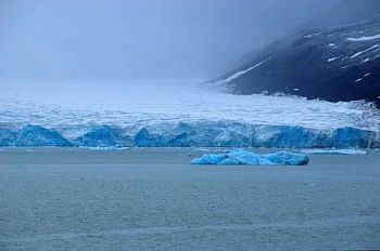Spät am Abend erreichen wir den Monaco-Gletscher. Die Nebelschwaden ziehen tief hinab und verstärken den eisigen Eindruck dieser erhabenen Landschaft. |