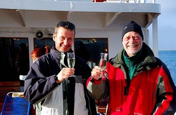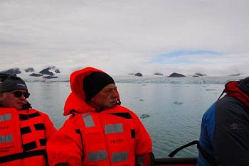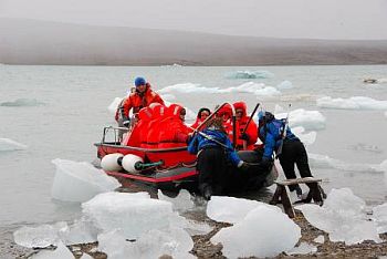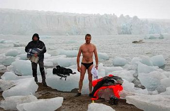 Gletscherwasser und Schneetreiben - hervorragende Bedingungen für ein Bad am Gletscher des 14. Juli. Mit diesem letzten Landgang endet unsere 4-tägige Schiffsreise im Nordwesten Spitzbergens. Wir können diese Tour nur jedem, der sich in diese Region begeben sollte, empfehlen. | |