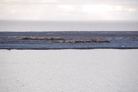 Auf der unter Schutz stehenden Insel Moffen liegen Tonnen von fettem und faulem Fleisch in Form von Walrossen. | |